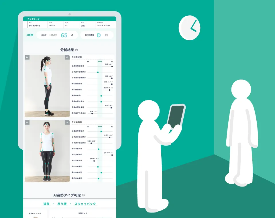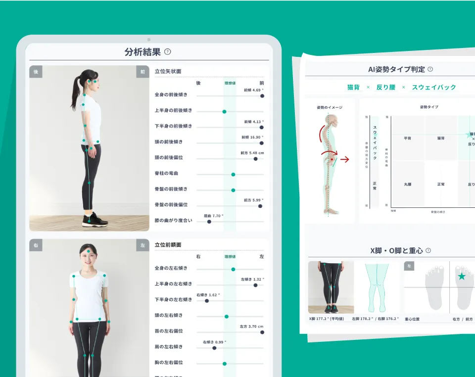 これまでは施術者のスキルによって精度が左右されていた姿勢評価ですが、タブレットやスマホさえあれば、定量的かつ一貫性のある評価基準でおこなえるようになりました。