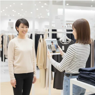 姿勢分析結果の写真を見ながら、お客様の体型や身長に合ったお洋服のお話に繋げましょう。信頼関係を構築しながらスタイリング提案が可能です。